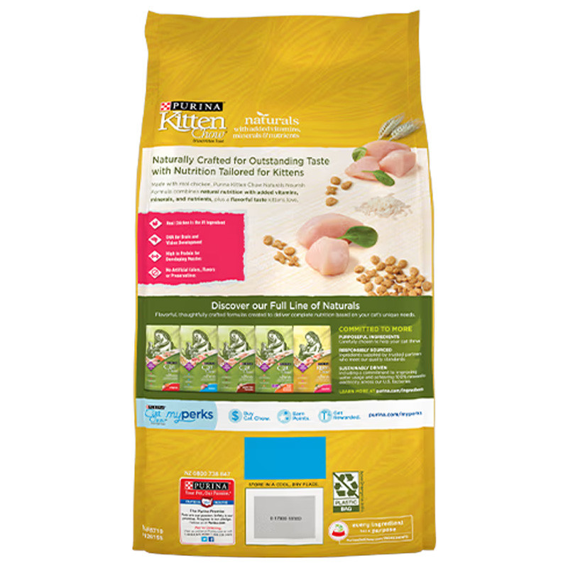 For added peace of mind, each batch is made with responsibly sourced ingredients and carefully prepared in Purina-owned facilities. Backed by proven formulas developed by expert scientists and nutritionists, Kitten Chow® Naturals helps keep your kitten healthy, active, and happy—today and as she grows.